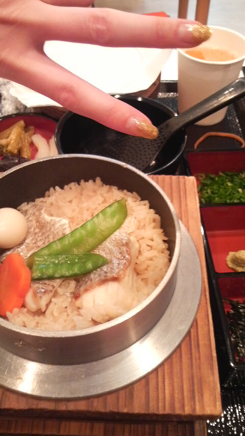 鯛釜飯めっちゃ美味しそぉ〜ゆいぴょん姫はもっと美味しそぉ〜とくに胸元がたまりませんなぁ