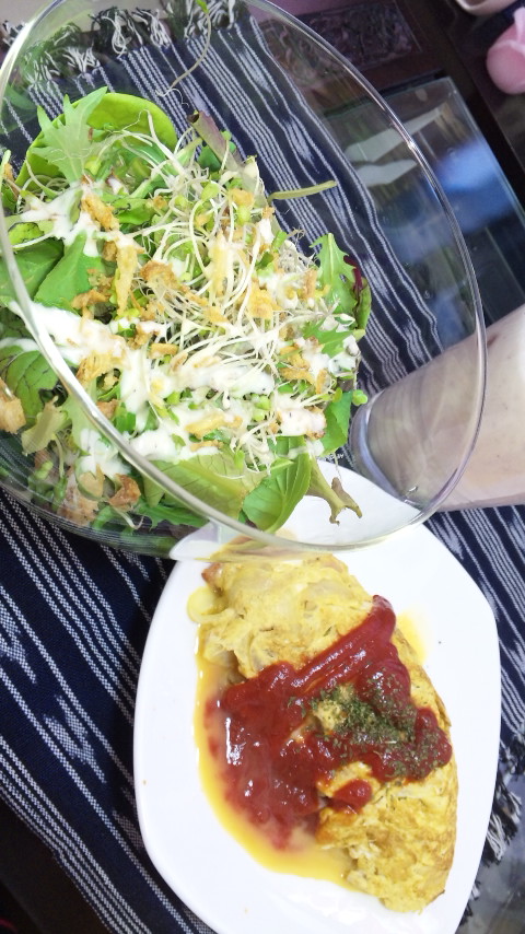 今日は、野菜とベーコンのオムレツとサラダにしたよーん