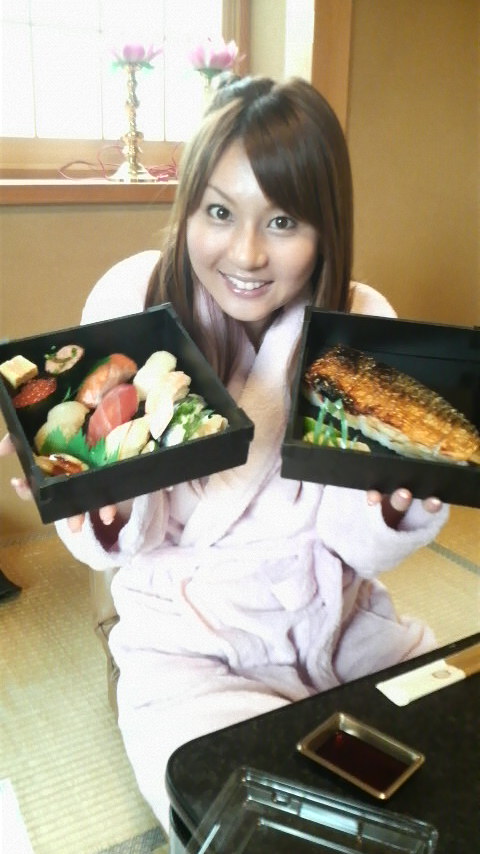 お寿司を持ってるゆいぴょんの表情、Goodだよ〜♪